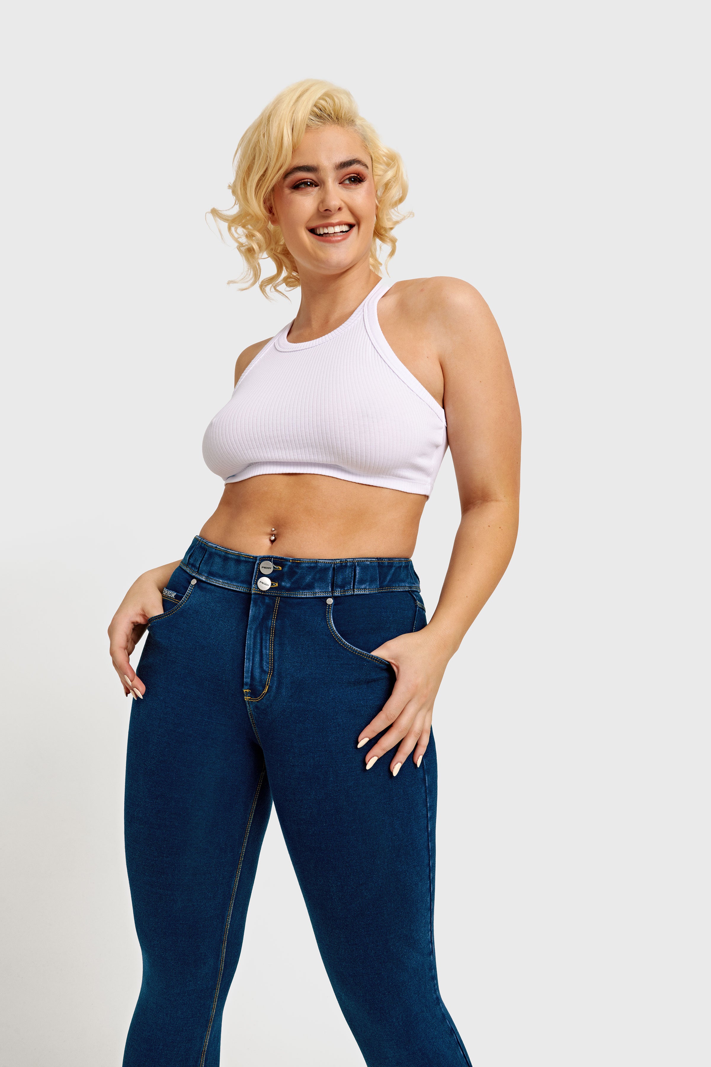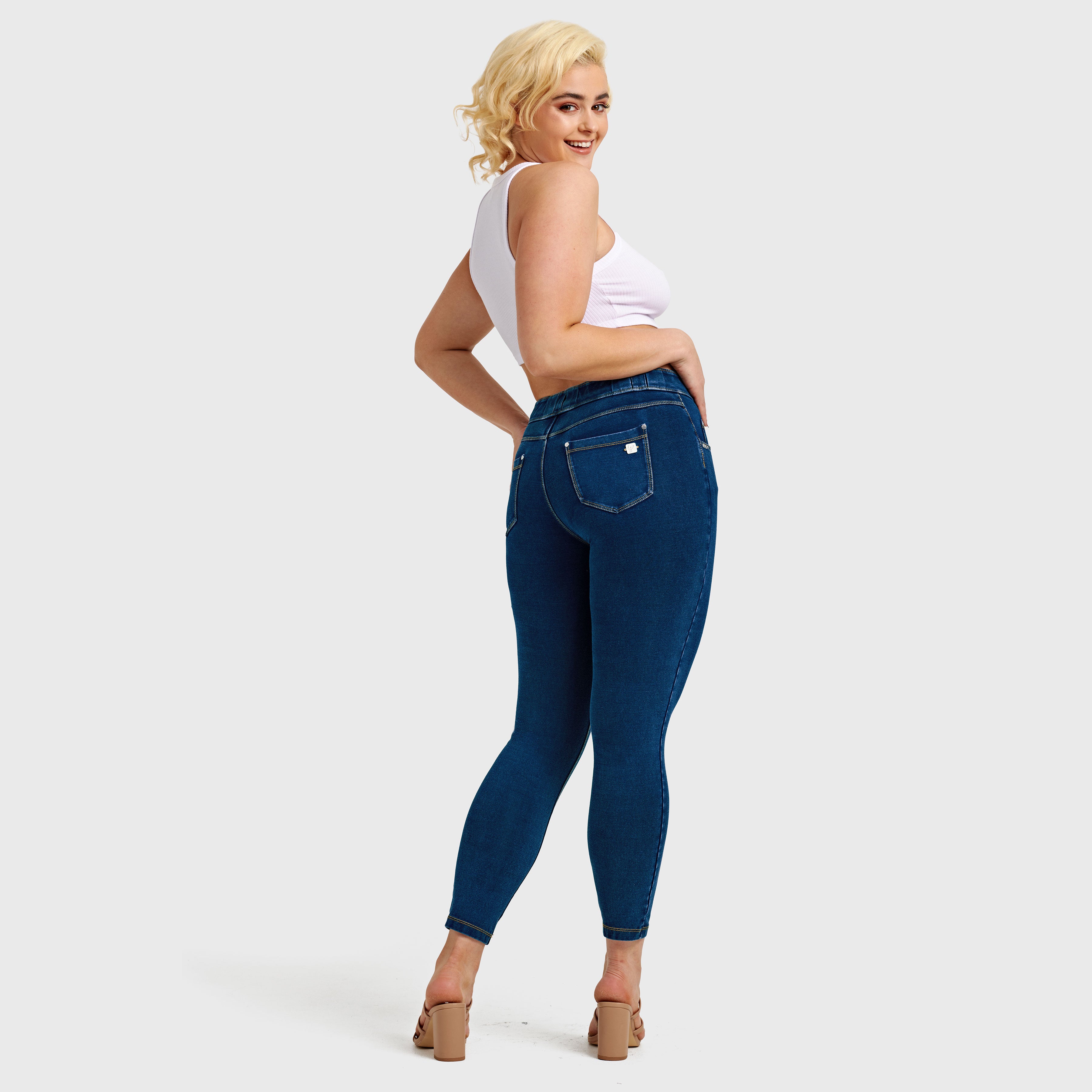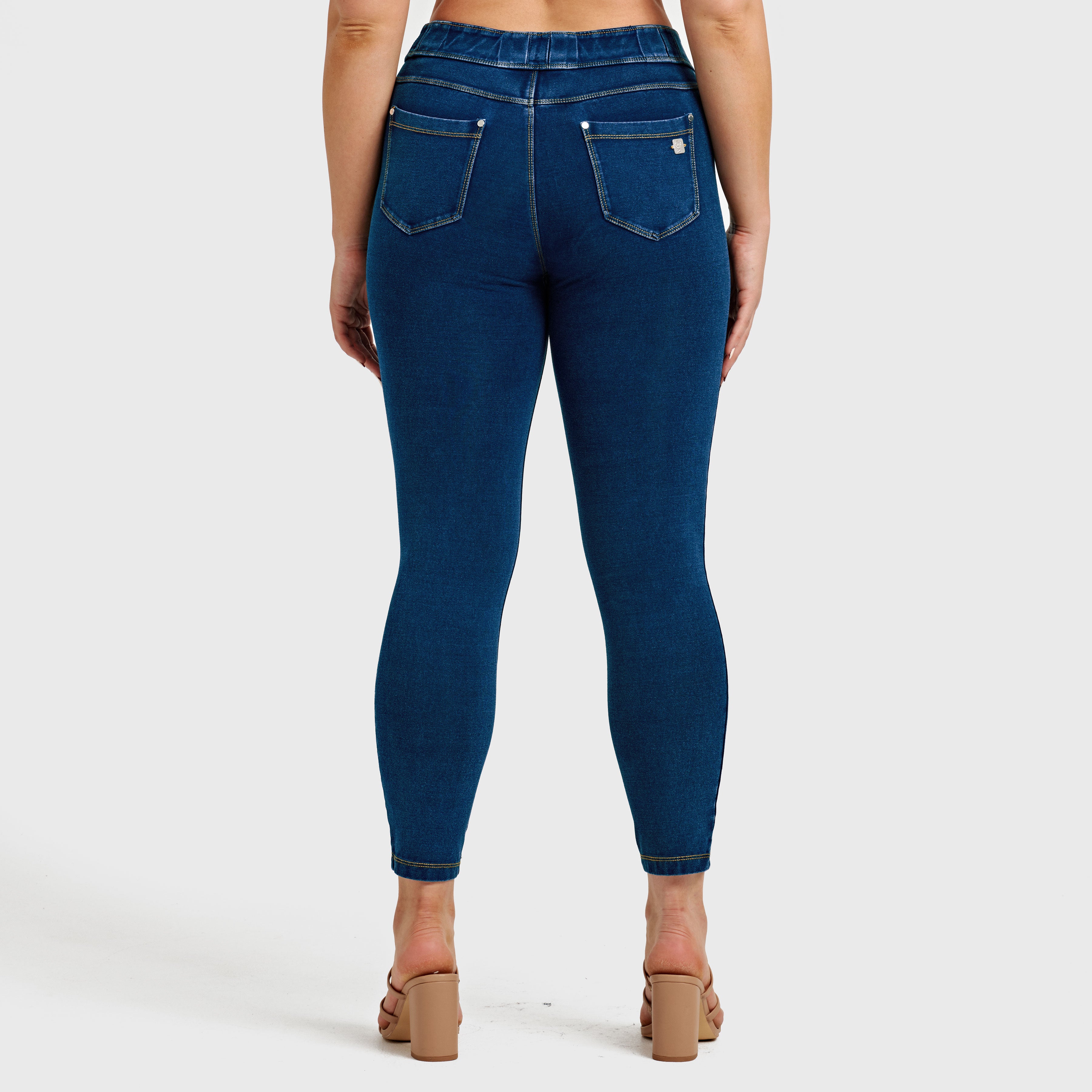 N.O.W® Denim - High Waisted - 7/8 Length - Dark Blue + Yellow Stitching