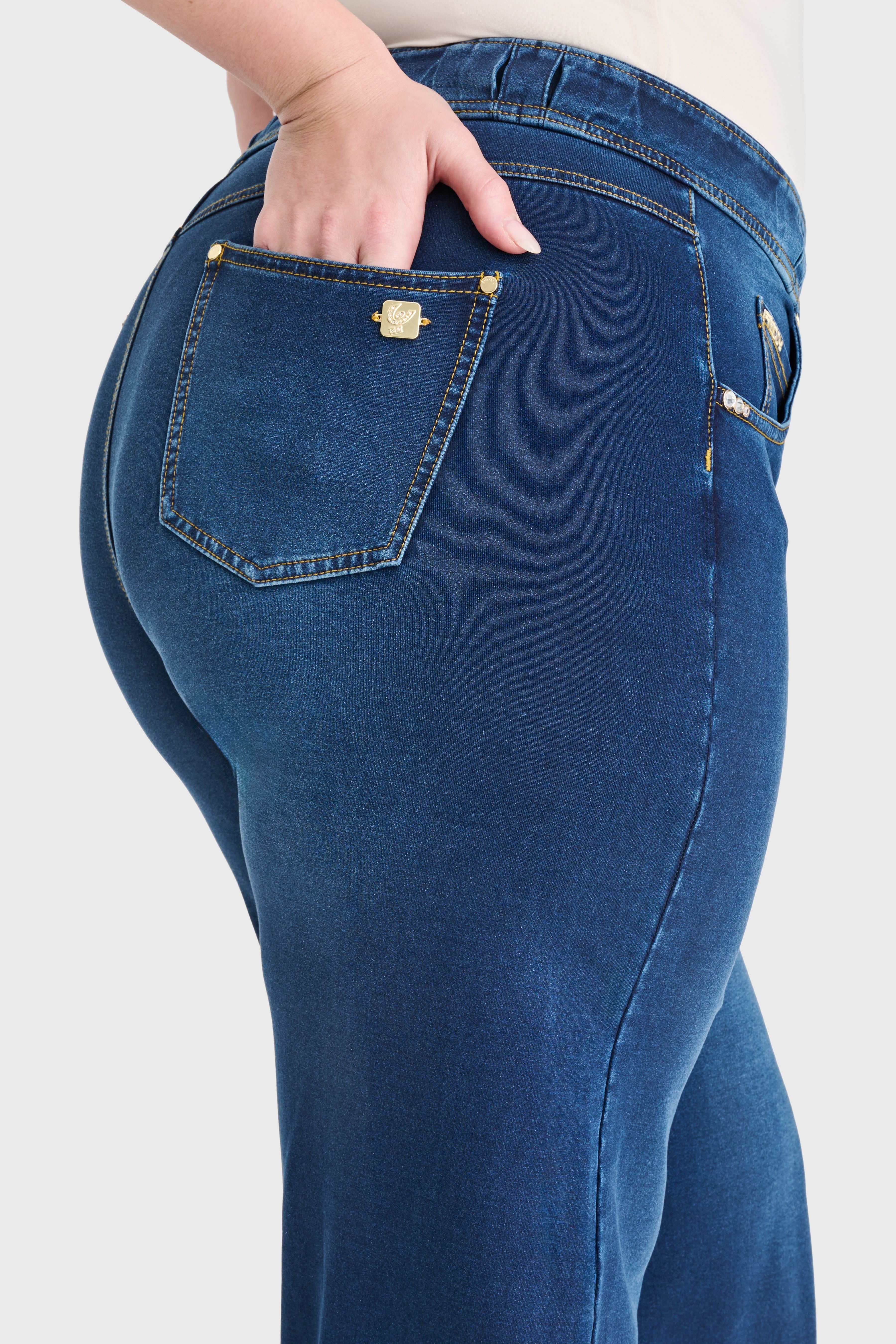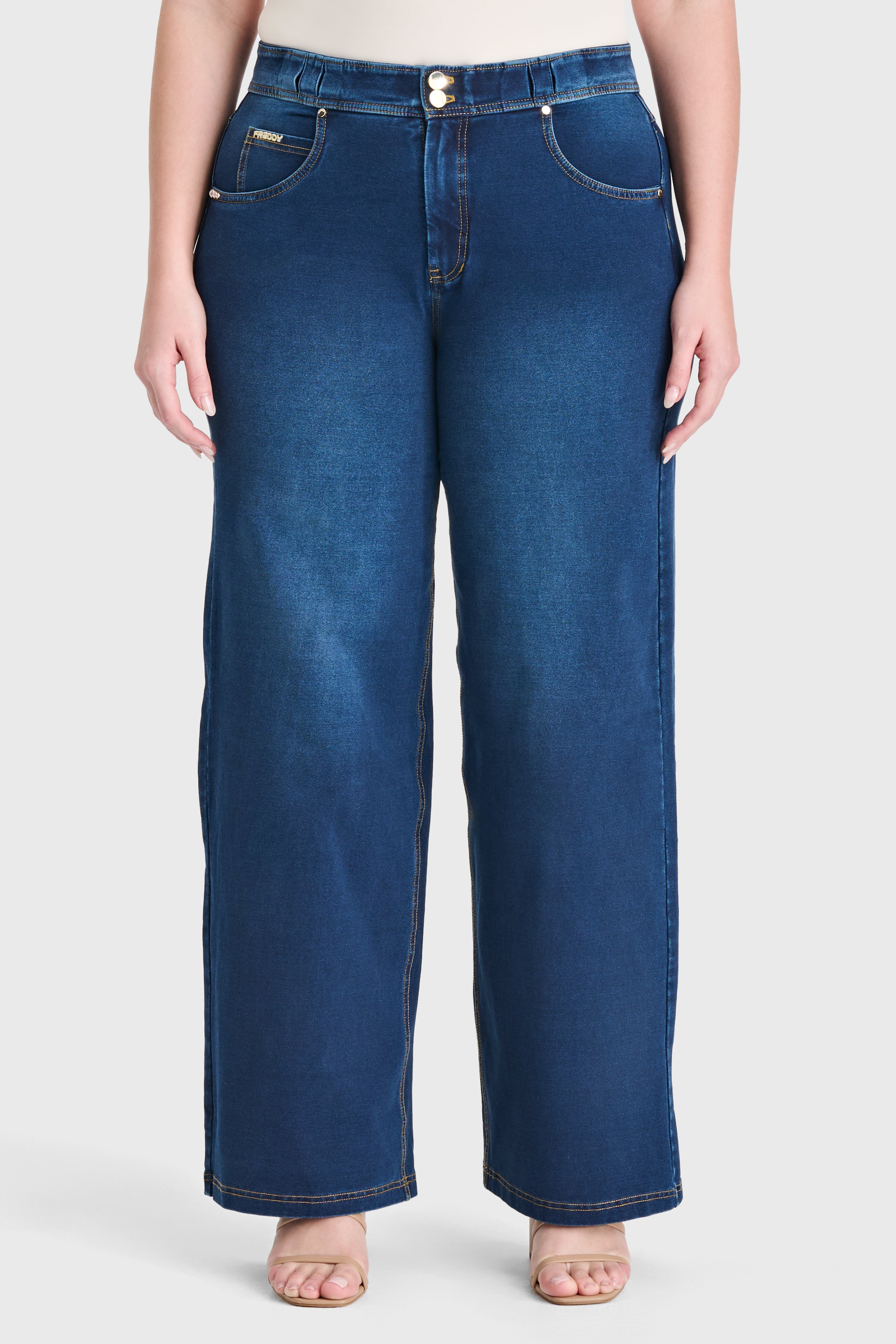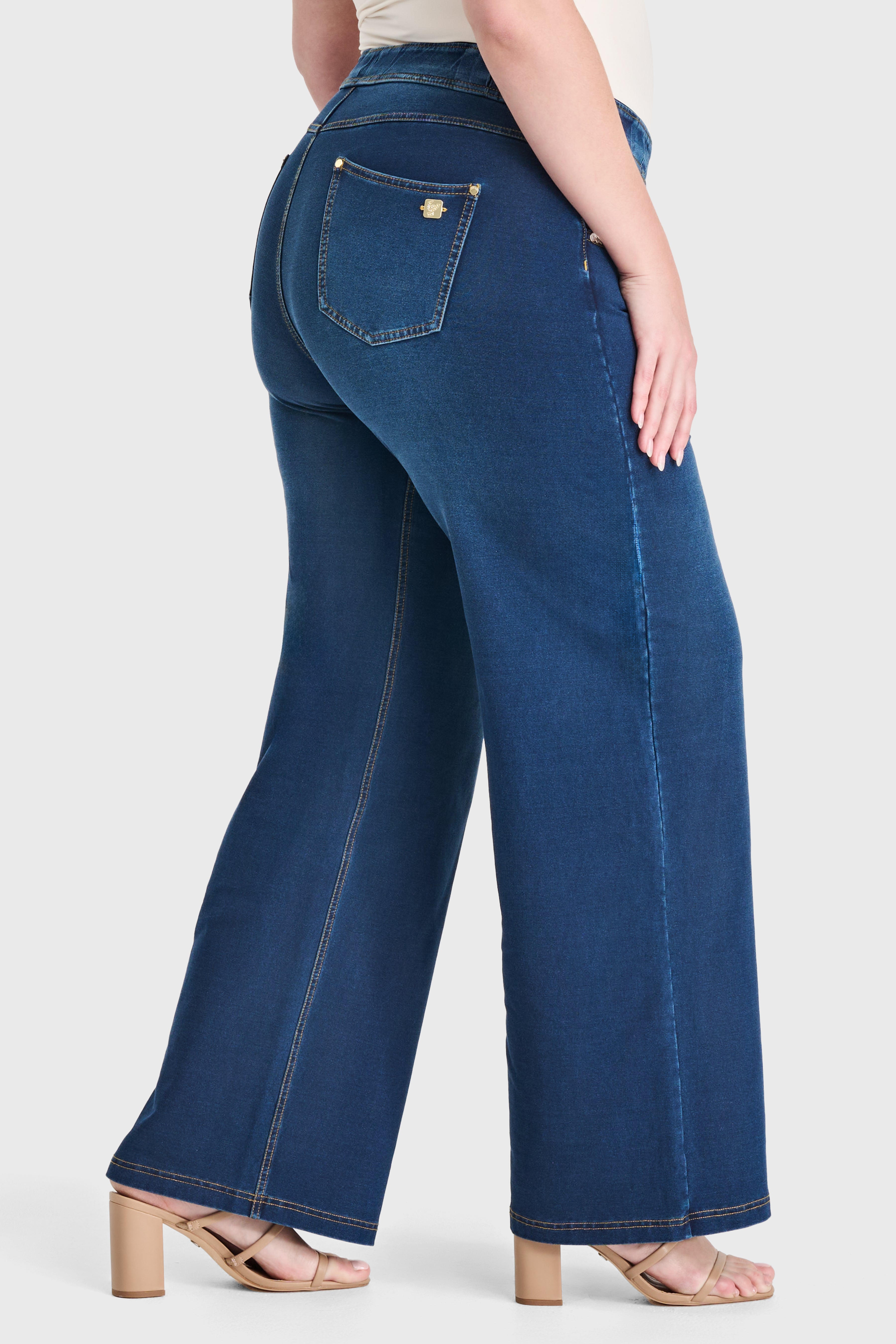 N.O.W® Denim Limited Edition - High Waisted - Wide Leg - Dark Blue + Yellow Stitching