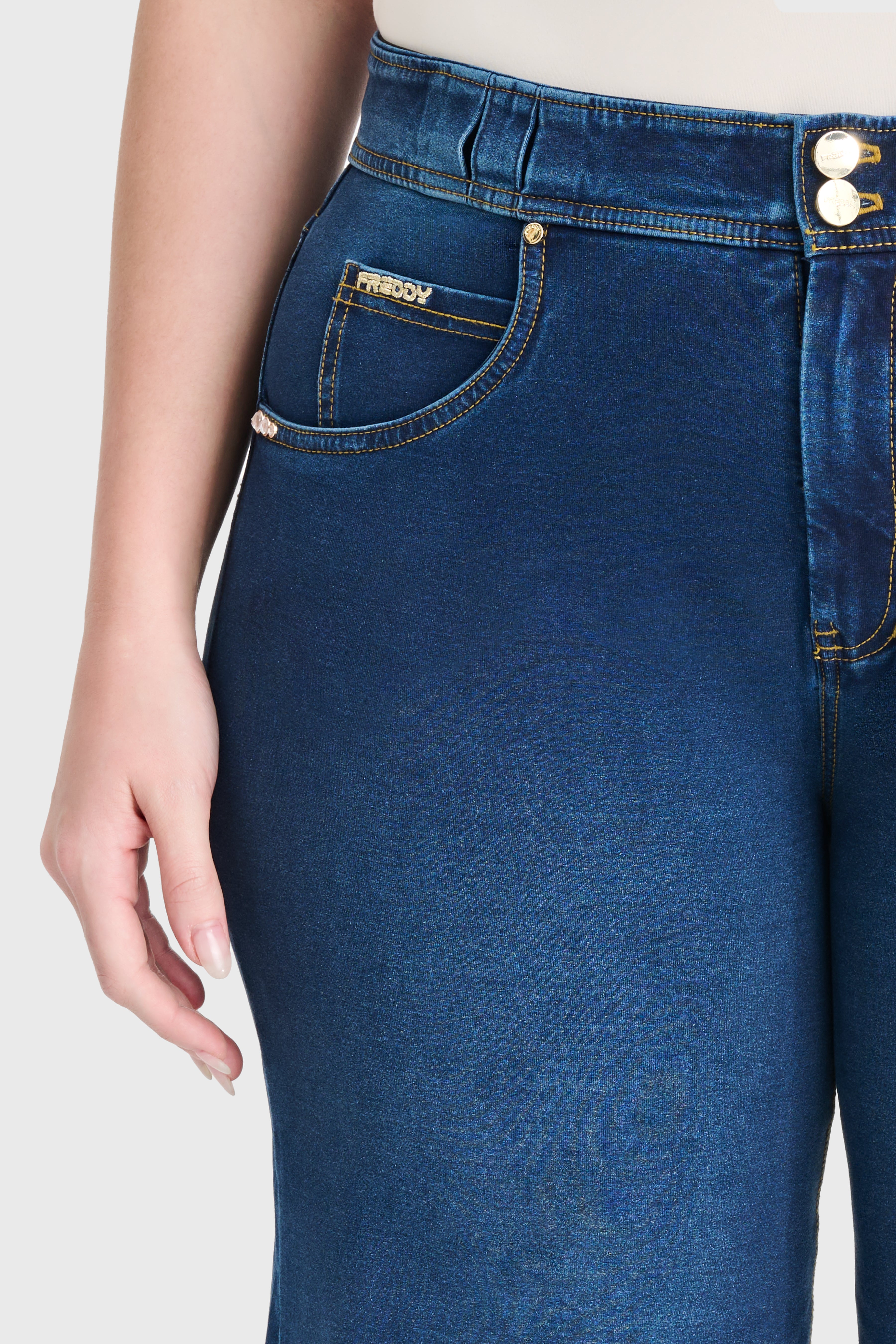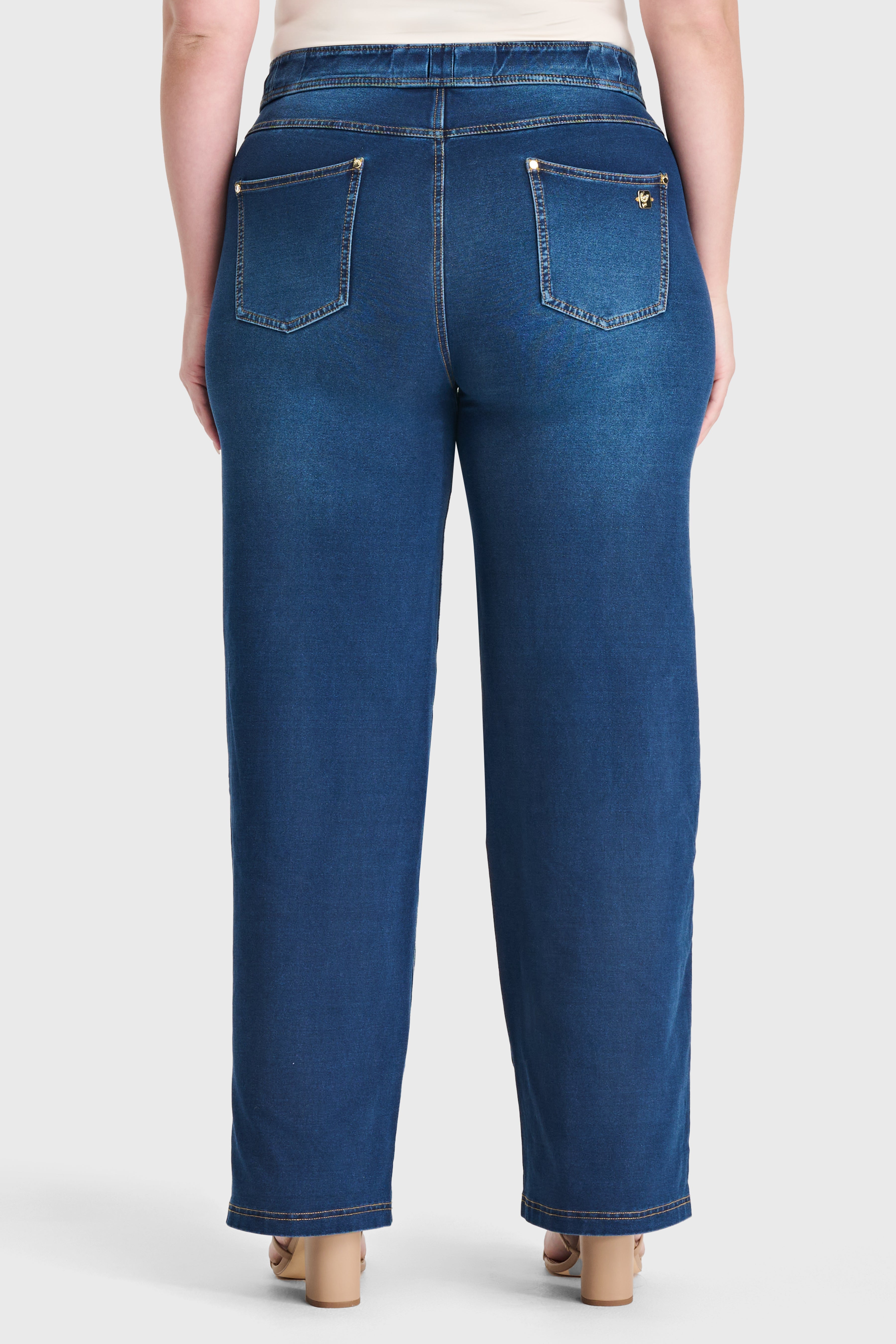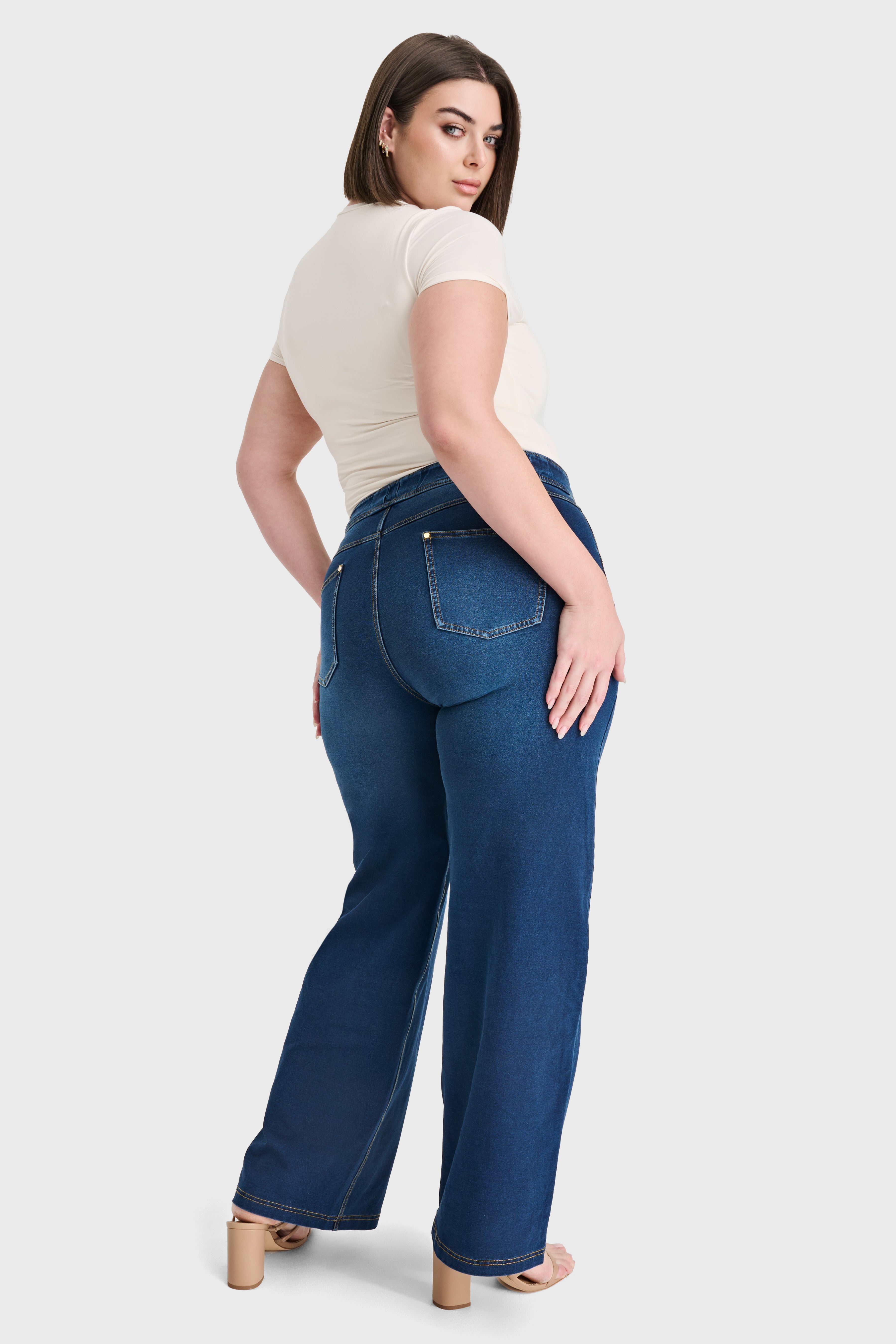 N.O.W® Denim Limited Edition - High Waisted - Wide Leg - Dark Blue + Yellow Stitching