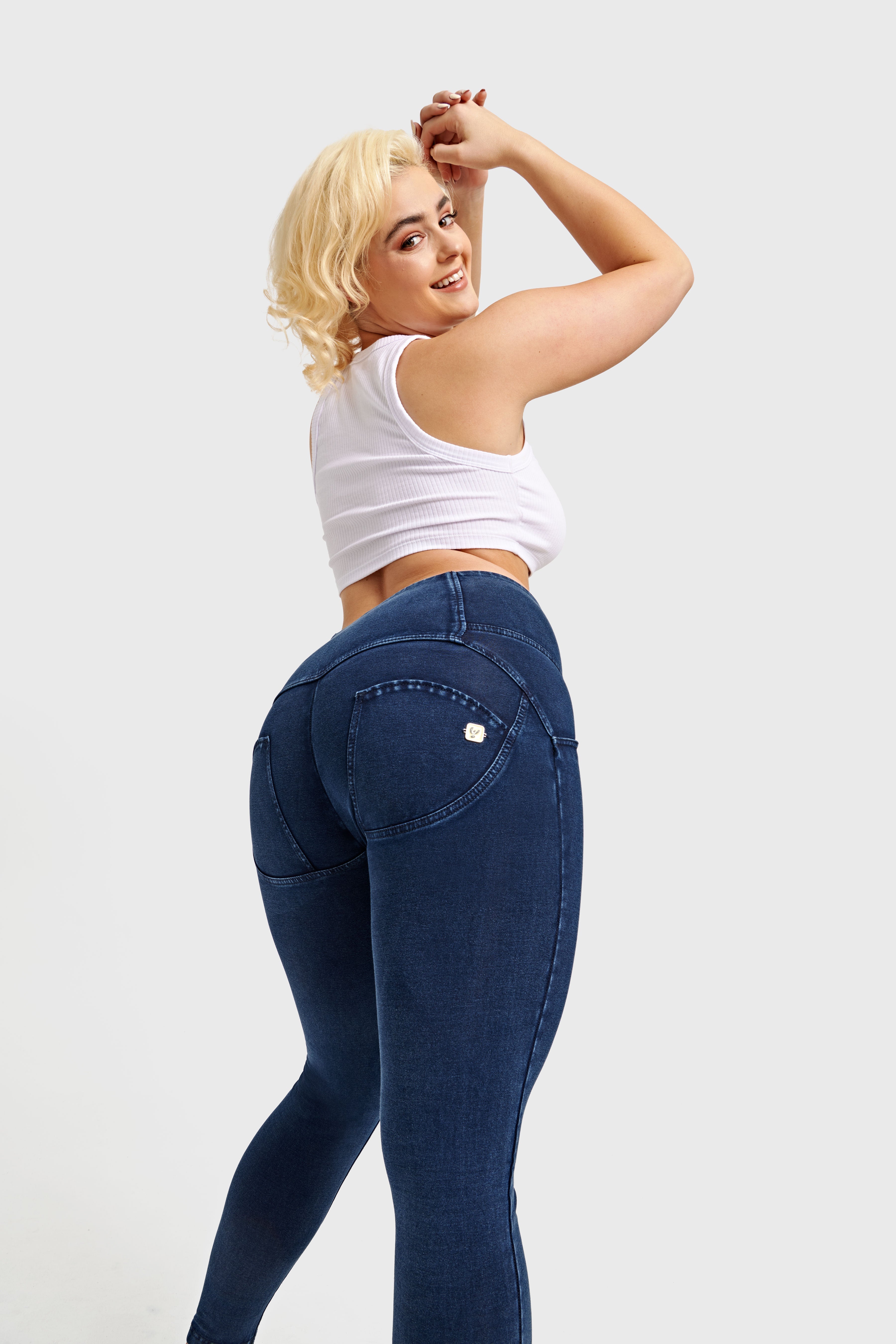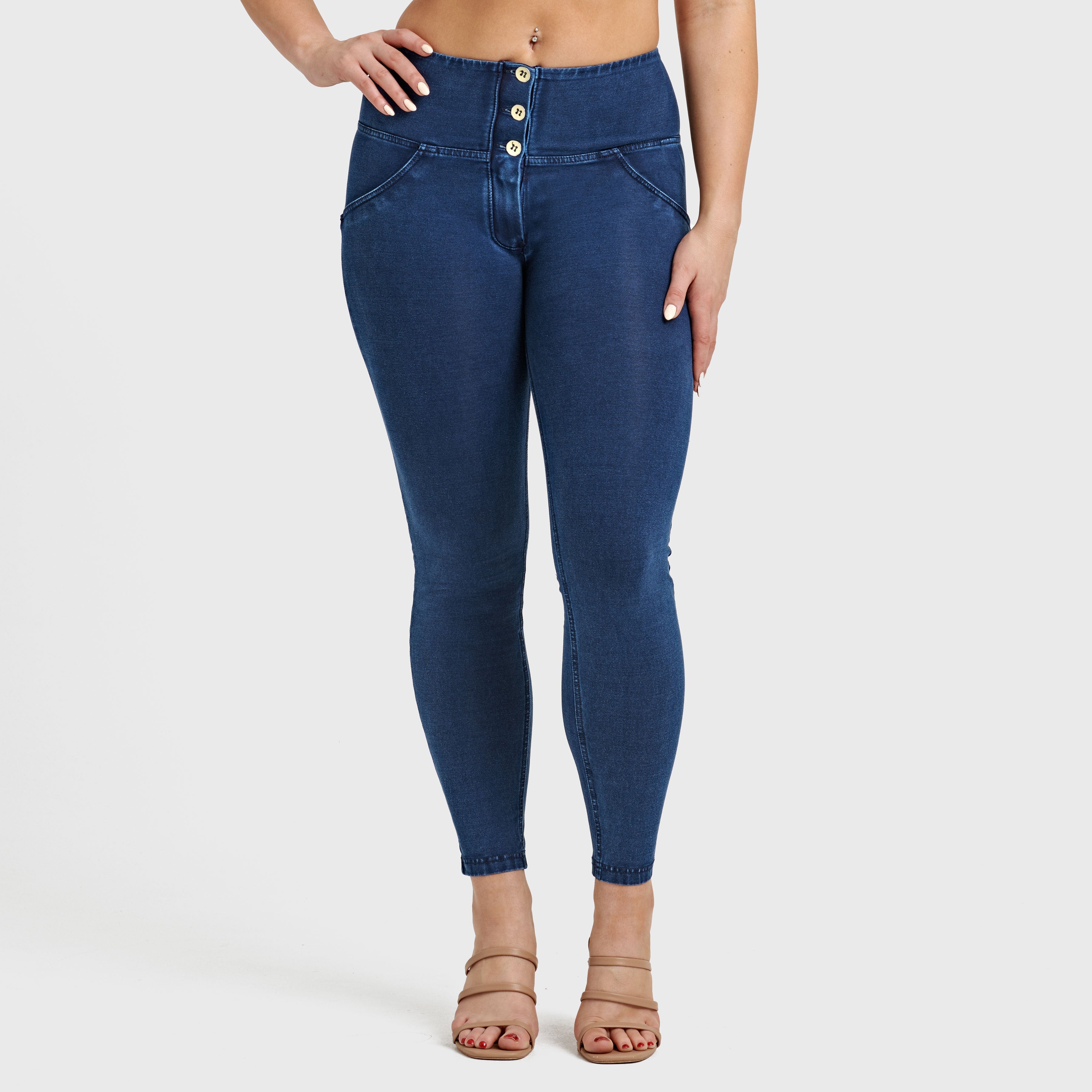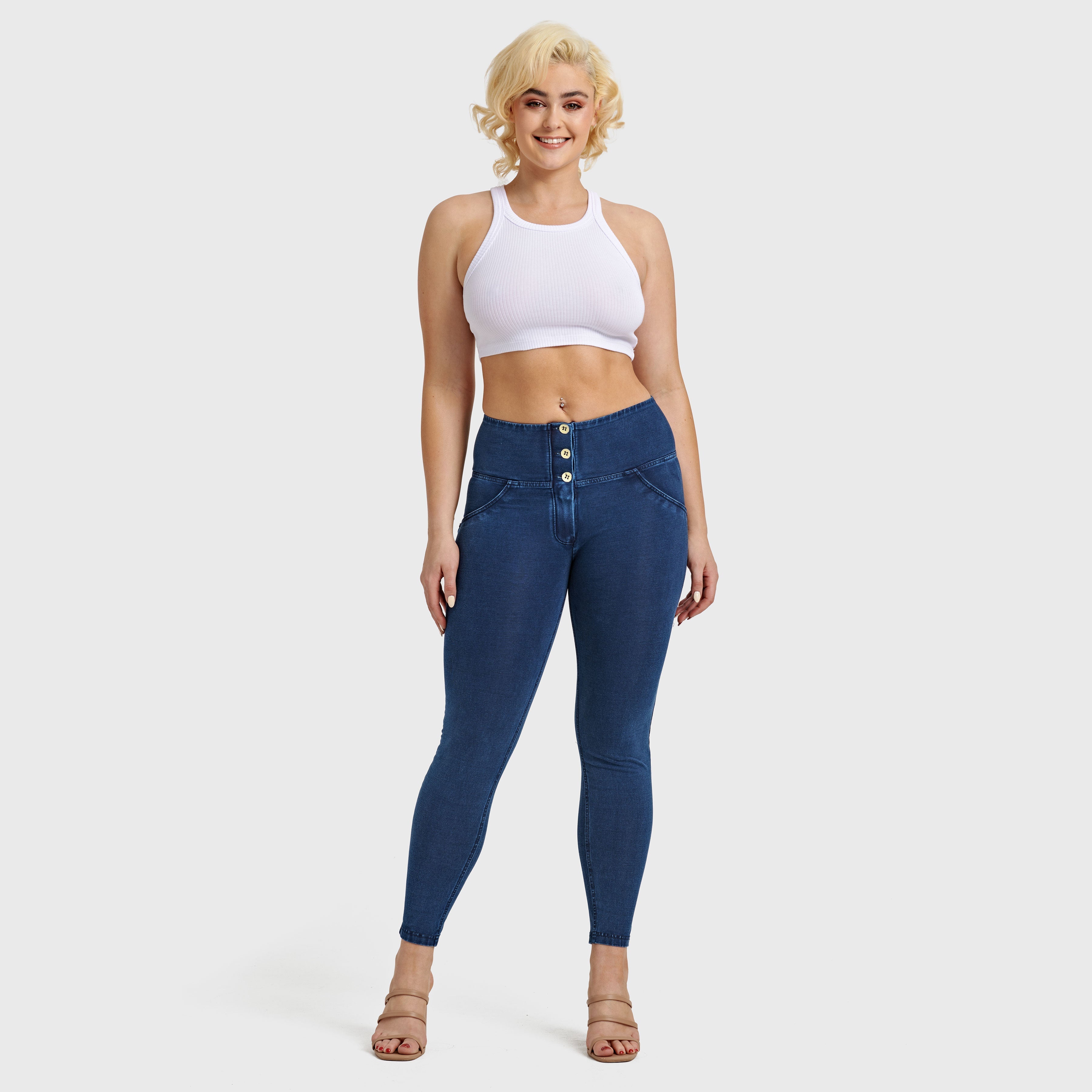 WRUP Denim - 3 Button High Waisted - 7/8 Length - Dark Blue + Blue Stitching