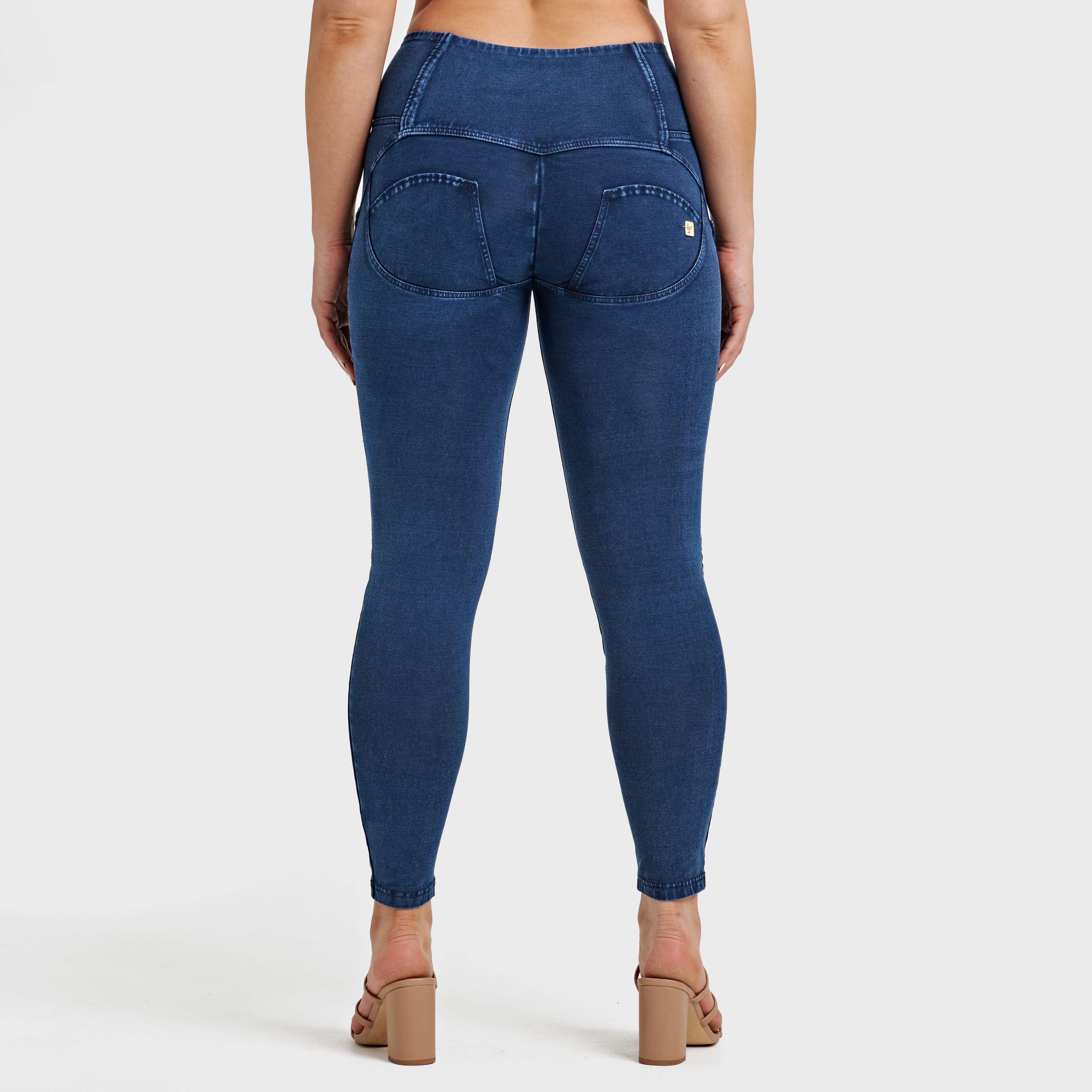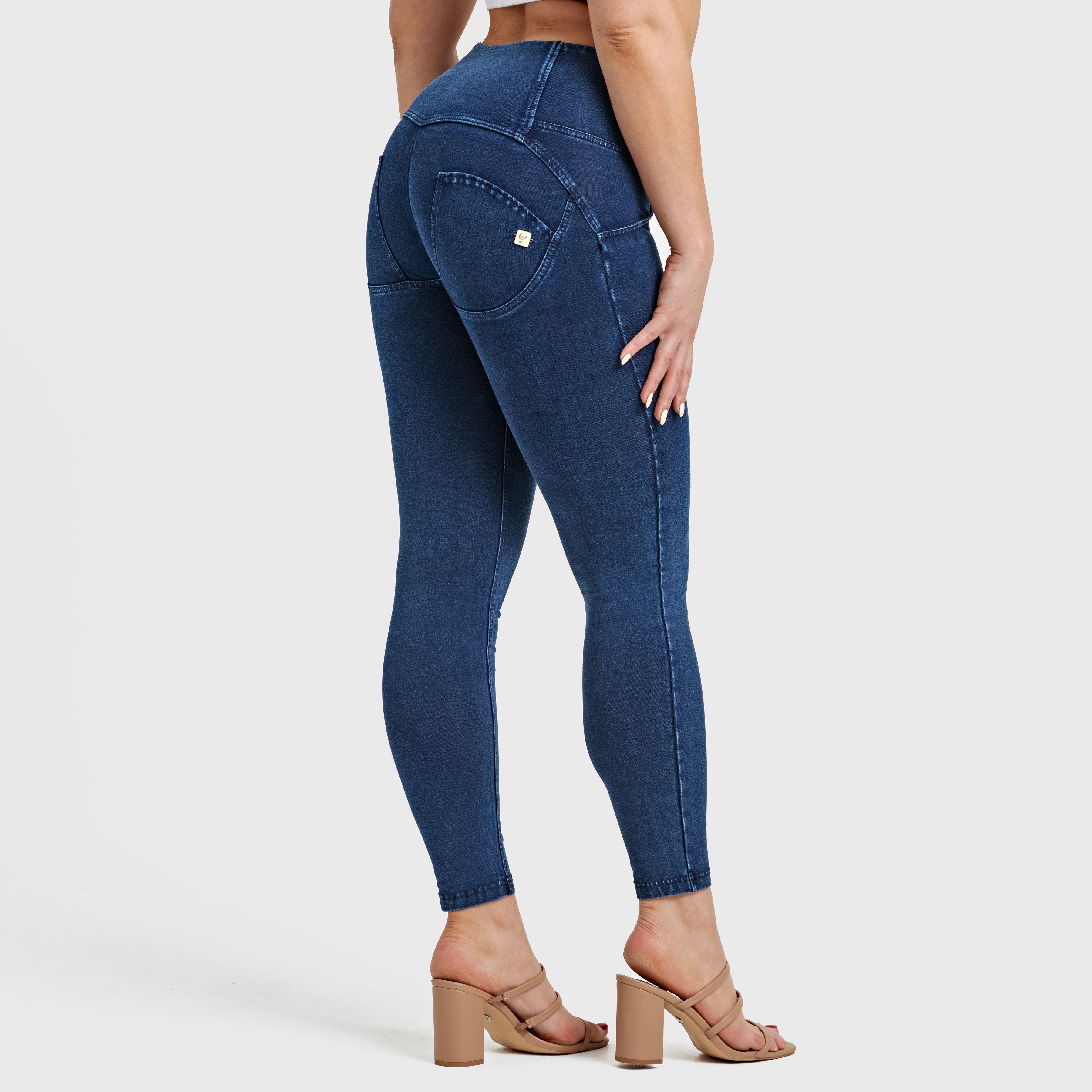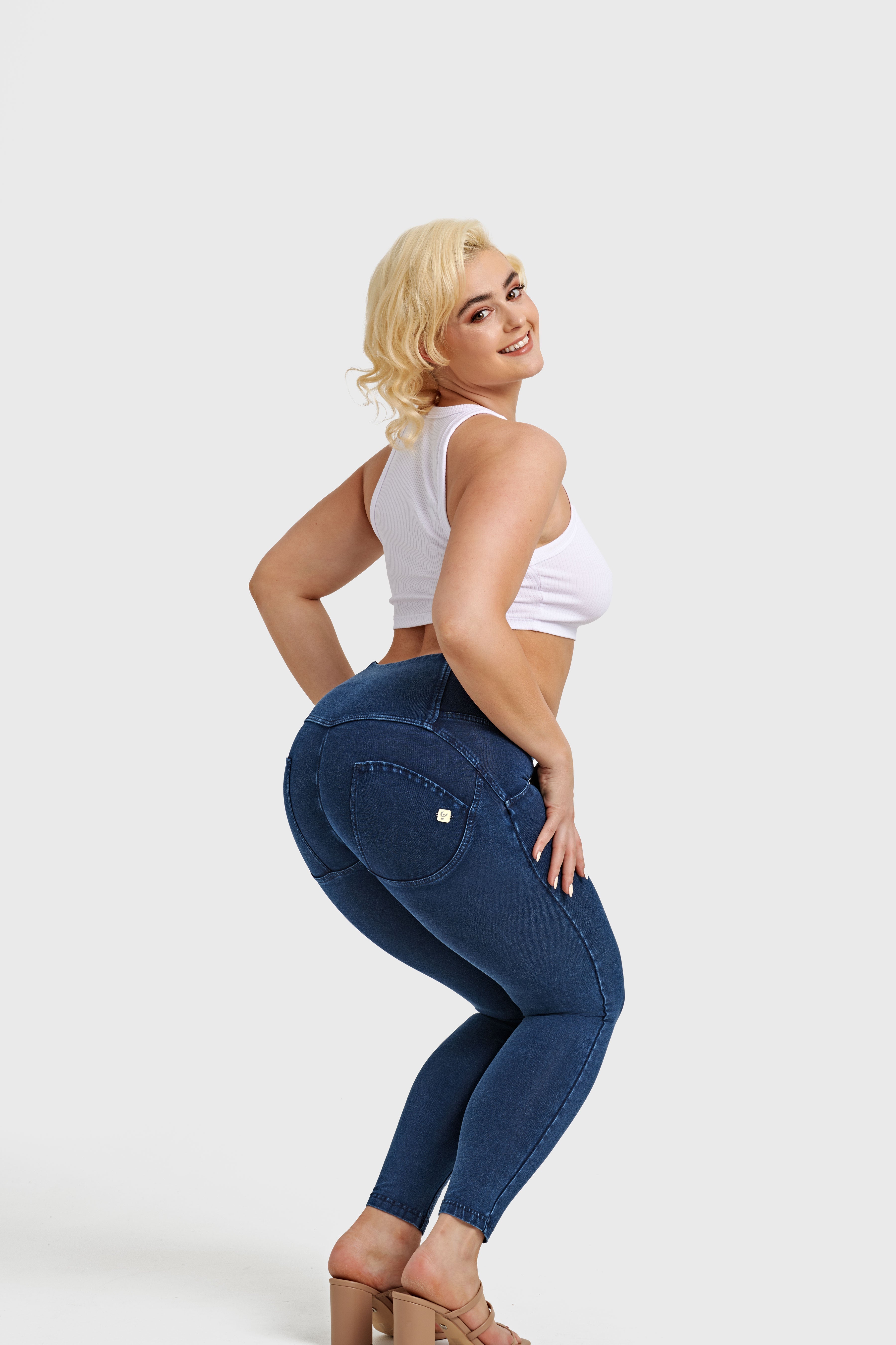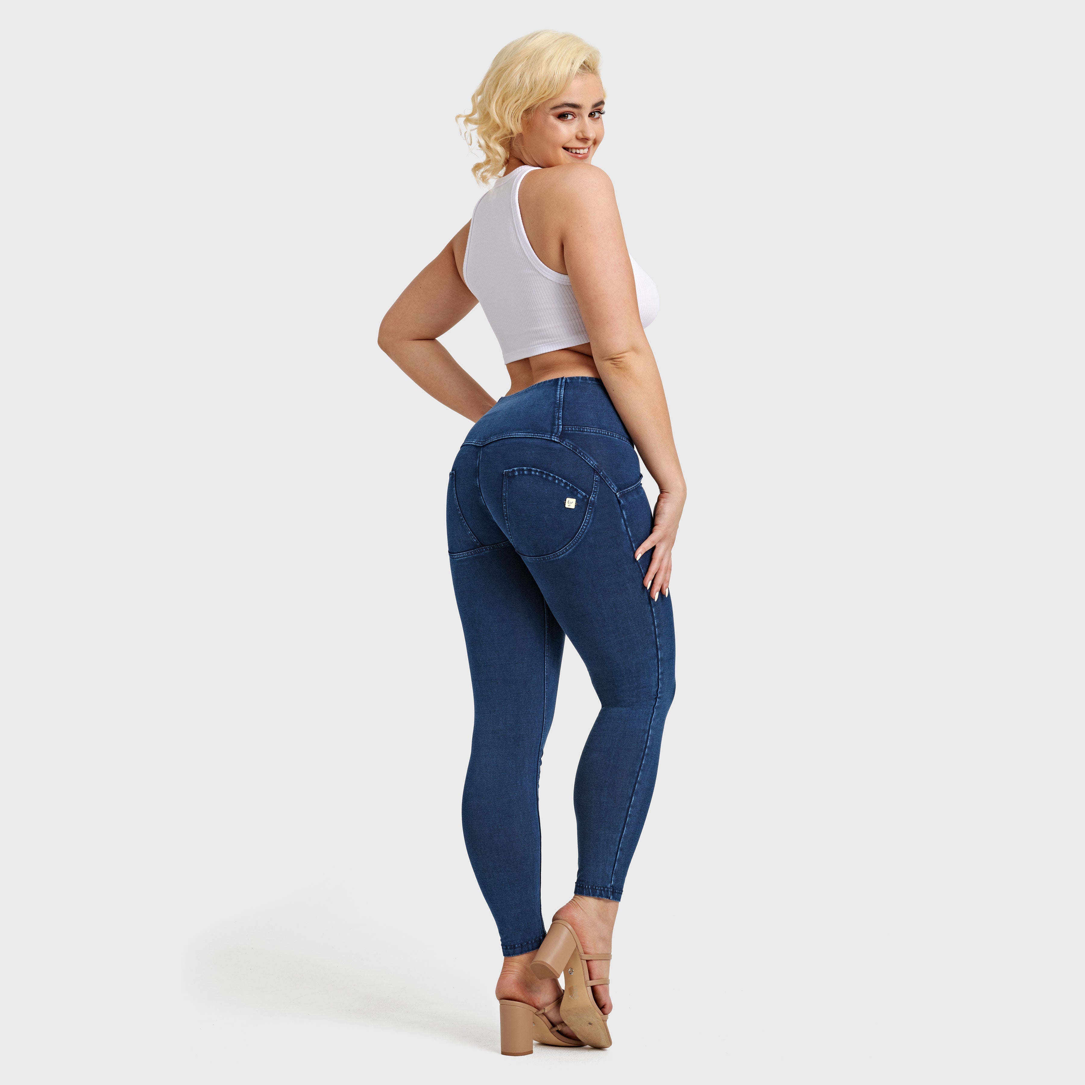 WRUP Denim - 3 Button High Waisted - 7/8 Length - Dark Blue + Blue Stitching