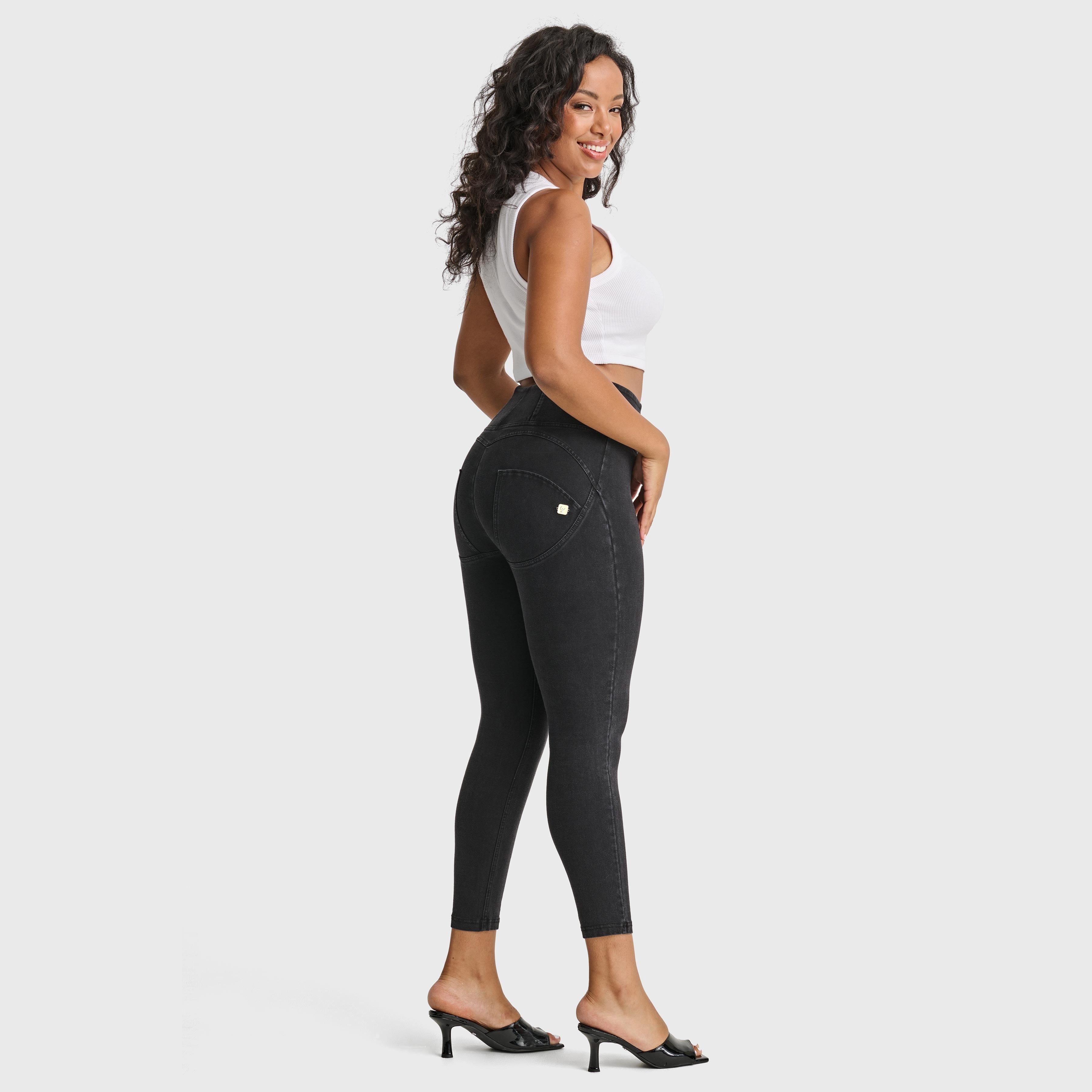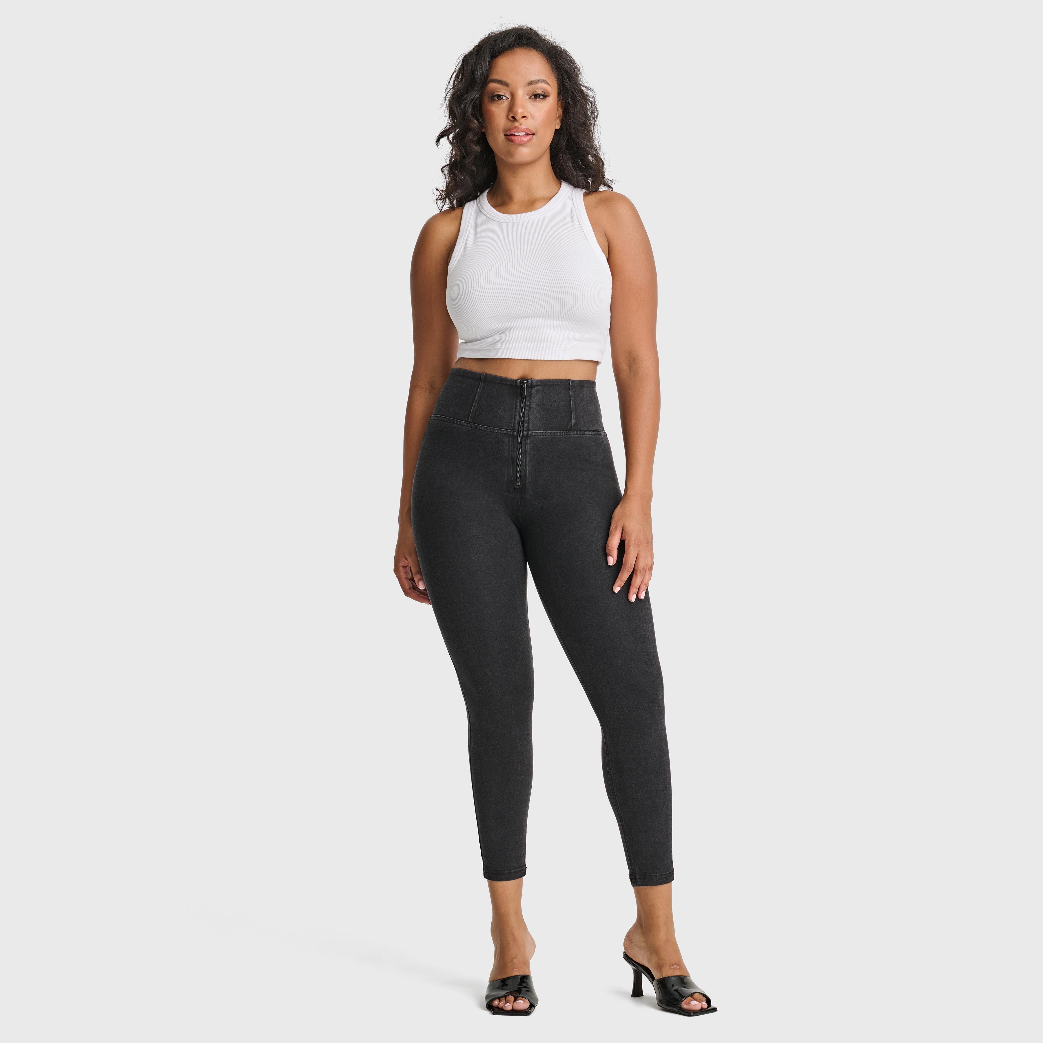 WRUP Denim - High Waisted - 7/8 Length - Black + Black Stitching