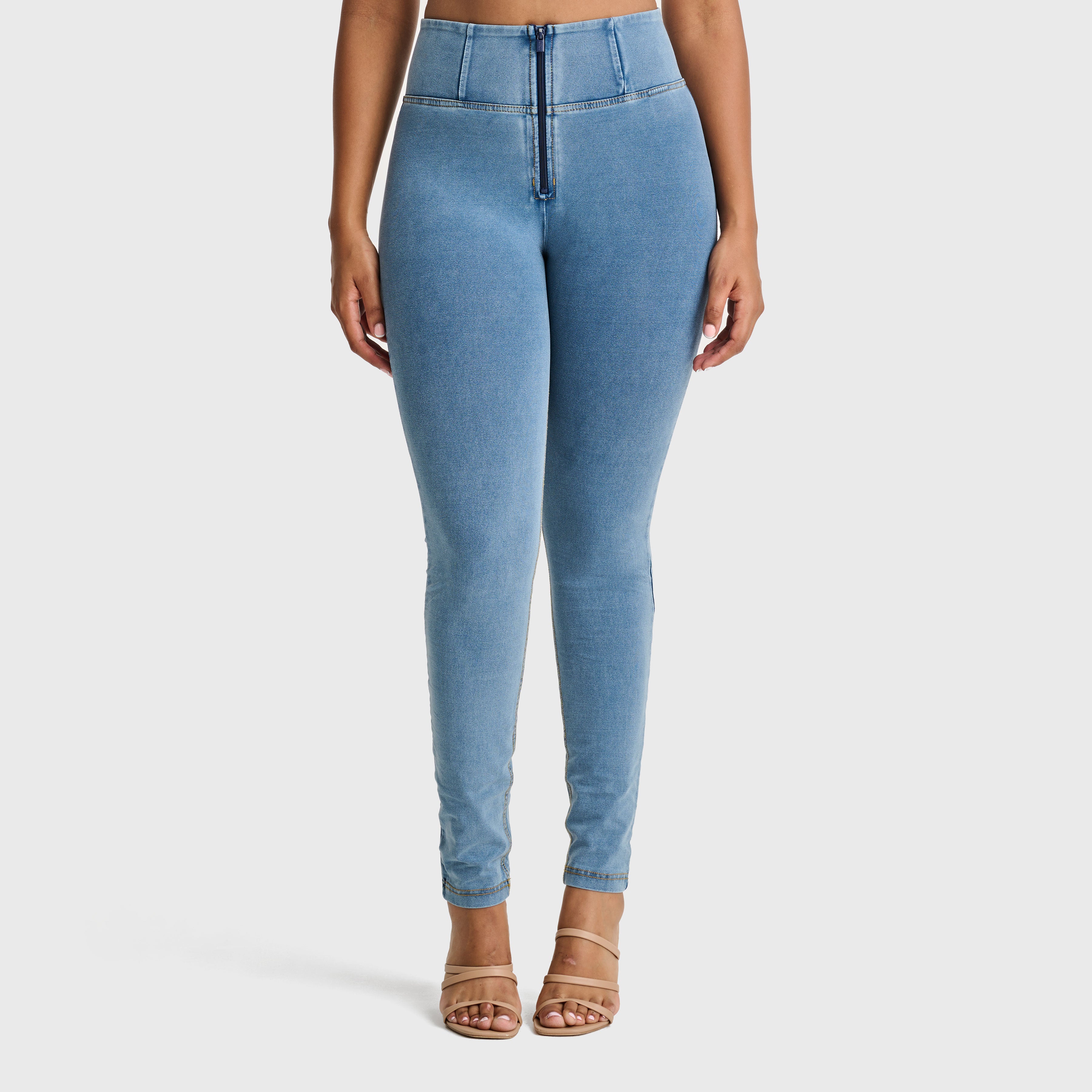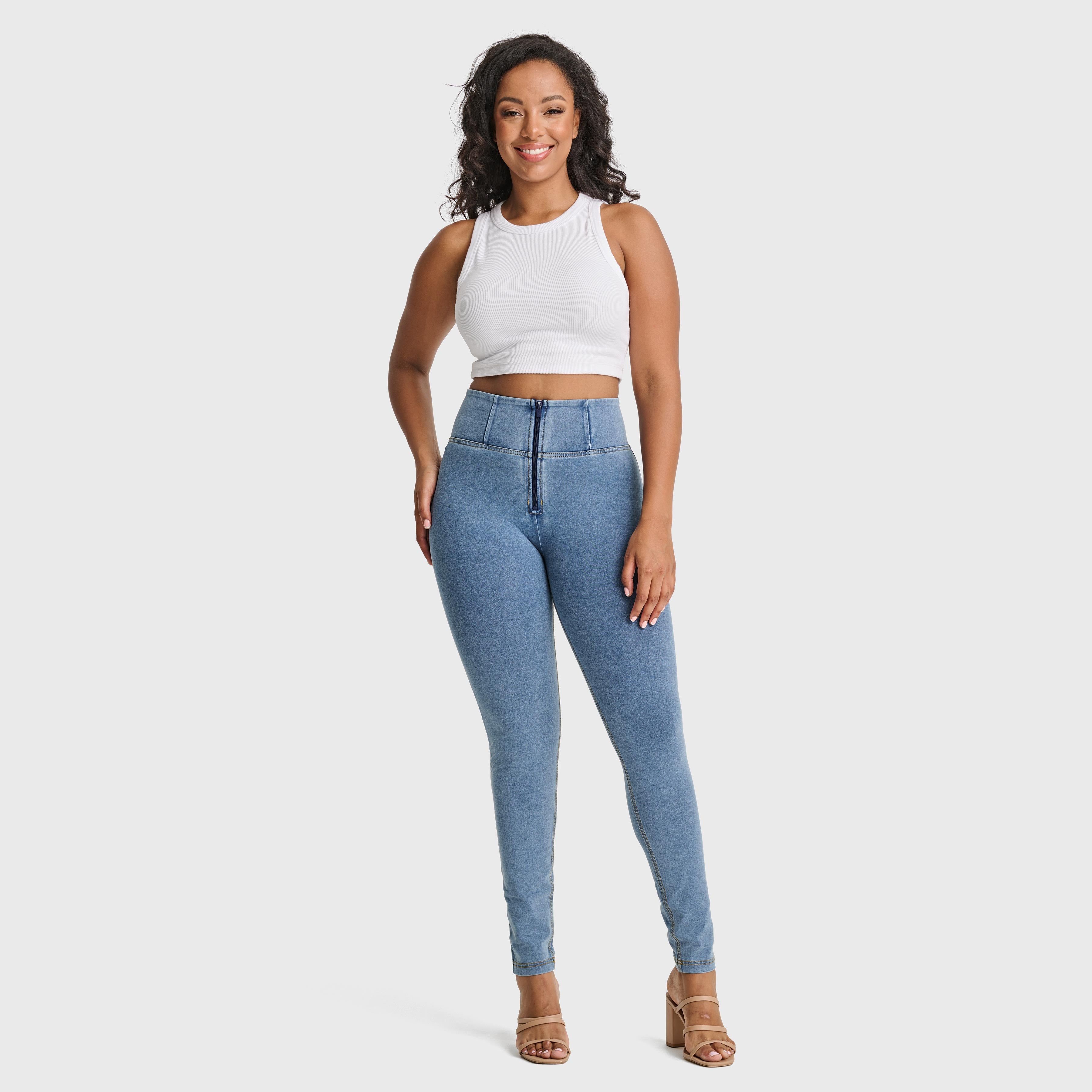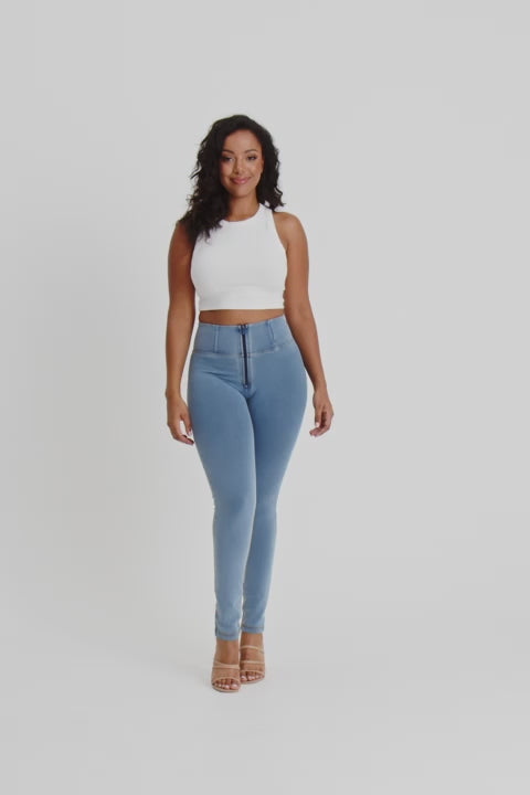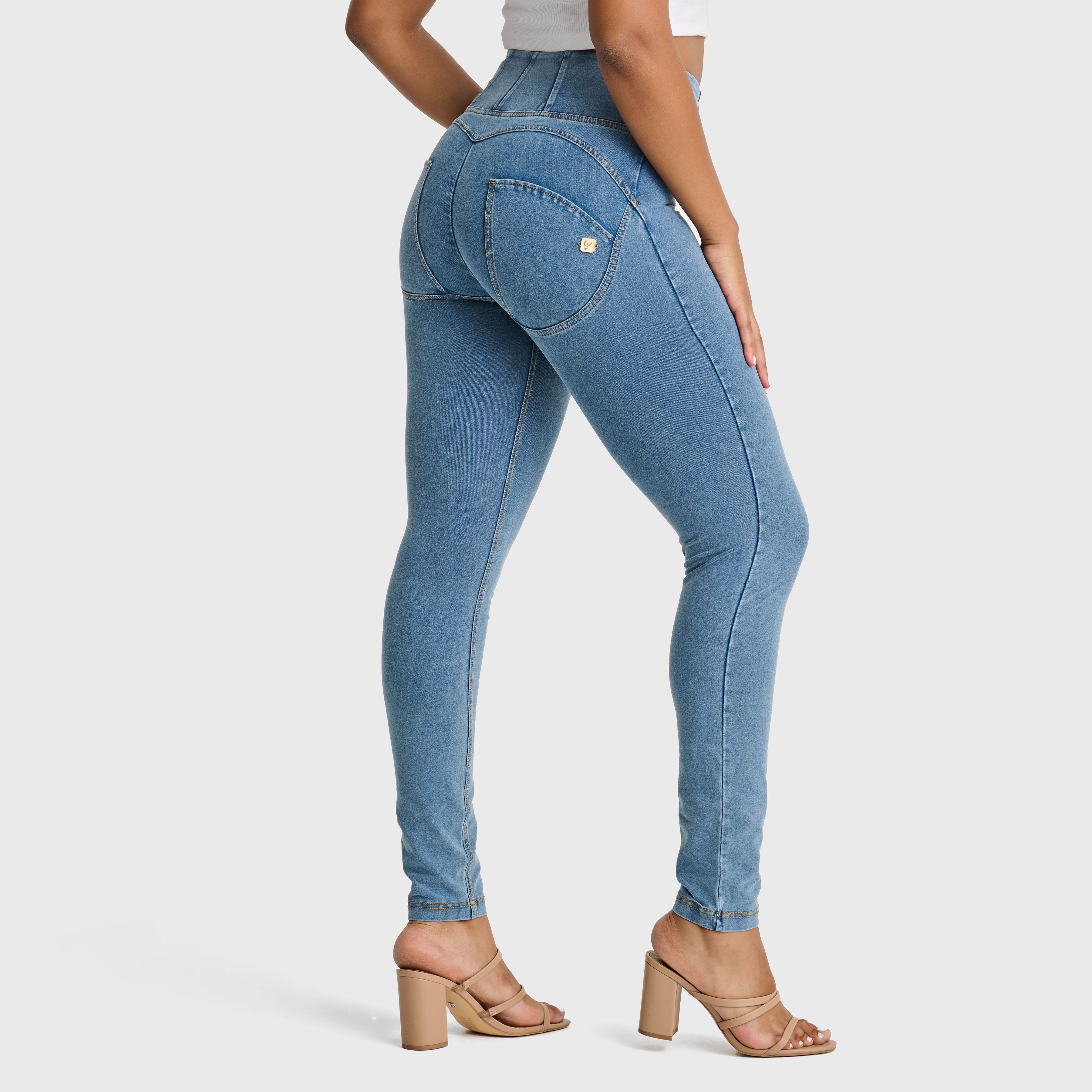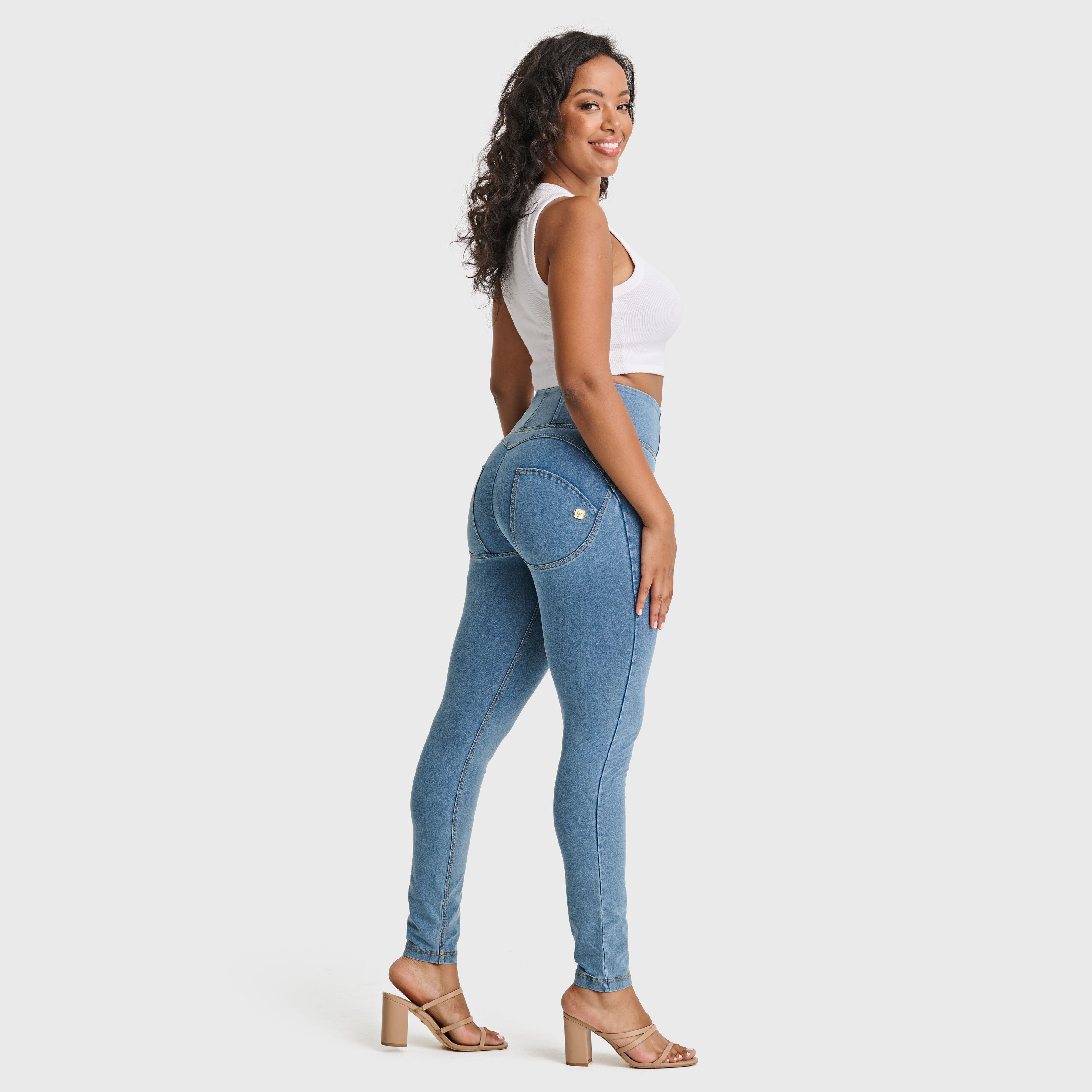 WRUP Denim - High Waisted - Full Length - Light Blue + Yellow Stitching